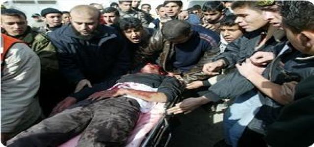 Two Palestinian fighters were killed following violent clashes with IOF troops near Beit Hunun (Erez) crossing in northern Gaza Strip on Monday, medical sources reported. The IOF soldiers detained more than 30 farmers while attending to their crops north of Beit Lahia also in northern Gaza. Witnesses reported that the IOF soldiers handcuffed and blindfolded the farmers before gathering them in one place under strict security measures. The witnesses said that special forces of the IOF infiltrated at dawn into cultivated lands in Abu Nada area and surprised the farmers before breaking into civilian homes and kidnapping a number of them for field interrogation. |