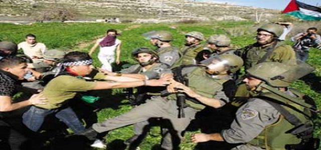 Five Palestinians suffered tear gas suffocation and three others were severely beaten Sunday afternoon when Israeli troops attacked violently the anti-wall weekly protest in Beit Jala town, Bethlehem. Palestinian local sources reported that the clashes broke out shortly after the protesters marched toward the lands which the Israeli occupation authority (IOA) embarked on bulldozing recently in the town in order to expand the segregation wall. The sources said the Israeli troops deliberately fired tear gas grenades at the Palestinian homes located in the vicinity of Cremisan street, where the march started, which led to a fire in olive trees and grass in Palestinian lands there. In separate incidents, the Israeli occupation forces (IOF) invaded at dawn Sunday the Palestinian Negev area and kidnapped more than 13 Palestinian young men from Al-Talalqa clan in Laqiya village. According to 1948 Palestinians website, forces of policemen, troops and special forces stormed the village and ransacked several homes causing panic among children and women before kidnapping the young men. Eyewitnesses said Israeli warplanes were seen flying in the area during the raid. The IOF troops on the same day kidnapped a Palestinian citizen and confiscated his car in Dura town. They also raided many Palestinian homes in Al-Khalil villages and towns and handed a citizen a summons from the Israeli intelligence. Another group of Israeli troops erected a mobile barrier at the entrance to Fawar village in Al-Khalil and another one at the entrance to Halhoul town and embarked on stopping cars and checking IDs. The troops also closed the military Atara checkpoint, north of Ramallah before the movement of passengers, where they prevented the Palestinians from passing through and detained some of them. |