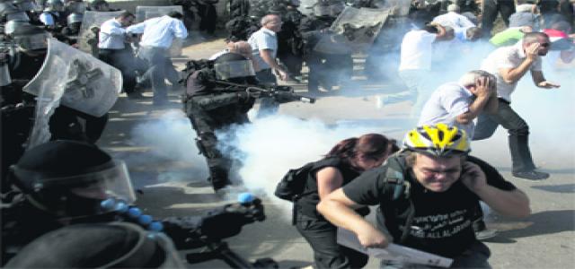 Some 1,500 police were reported to have faced off with hundreds of Arab and Jewish demonstrators in the town yesterday.