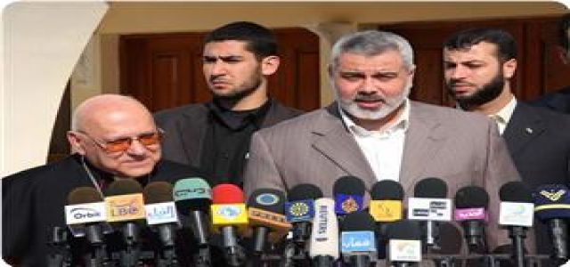Ismail Haneyya, the premier of the PA caretaker government, stated during his meeting Wednesday with patriach Michel Sabbah and a high-level church delegation that Muslims and Christians in Palestine are one people with the same hopes, suffer the same pain and share the same aspirations and common destiny. Haneyya also highlighted that his government would not allow anyone to come between or disturb the brotherhood of Christian and Muslim Palestinians. In a press statement received by the PIC, Haneyya"s office reported that extensive discussions on a number of important issues in the Palestinian arena took place during the meeting especially the efforts made to end the state of internal division and the issues that concern the Palestinian Christians. Patriarch Sabbah expressed his hope that the internal discord in the Palestinian arena would come to an end, calling on Hamas and Fatah factions to focus on the elements of unity and not on points of discord. For his part, the premier renewed his affirmation that the Yemeni initiative is viable as a framework for dialog to end the crisis, asking the patriarch to urge PA chief Mahmoud Abbas to come to Gaza to discuss all issues on one table. |