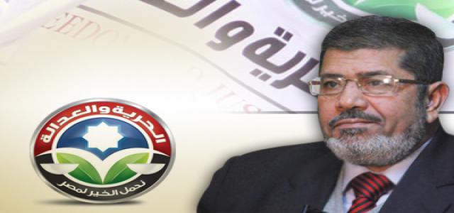 Dr. Morsi asserted that, "These fears are completely unfounded, as we, at the FJP and the Muslim Brotherhood are committed to the principle of participation not confrontation, which is one of the most important foundations on which we base all our social and political actions and activities in all areas. Moreover, the nomination of a member of the Brotherhood for any post, no matter how important, is only putting him forward to the public for approval, so the people may support our decision to endorse him, in a climate of genuine freedom and democracy".