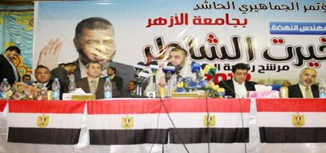 On Tuesday, Al-Shater started his presidential campaign from Al-Azhar University. He held his first public conference after the announcement of his candidacy for Egypt’s forthcoming presidential elections, at the Faculty of Commerce – Azhar University.